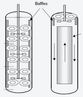 對於容器較高的液液分散,可能還需要多層攪拌器,或者在加上部擋闆以及導流筒等。如圖所示: