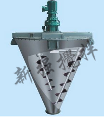 單錐雙螺旋錐形混合機,它由傳動部分、筒蓋、螺旋、筒體、出料閥等組成。