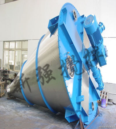 3. 螺旋部分:筒體内兩隻非對稱排列的螺旋作自、公轉行星運動時,在較大範圍翻動物料,使物料達到均勻混合。